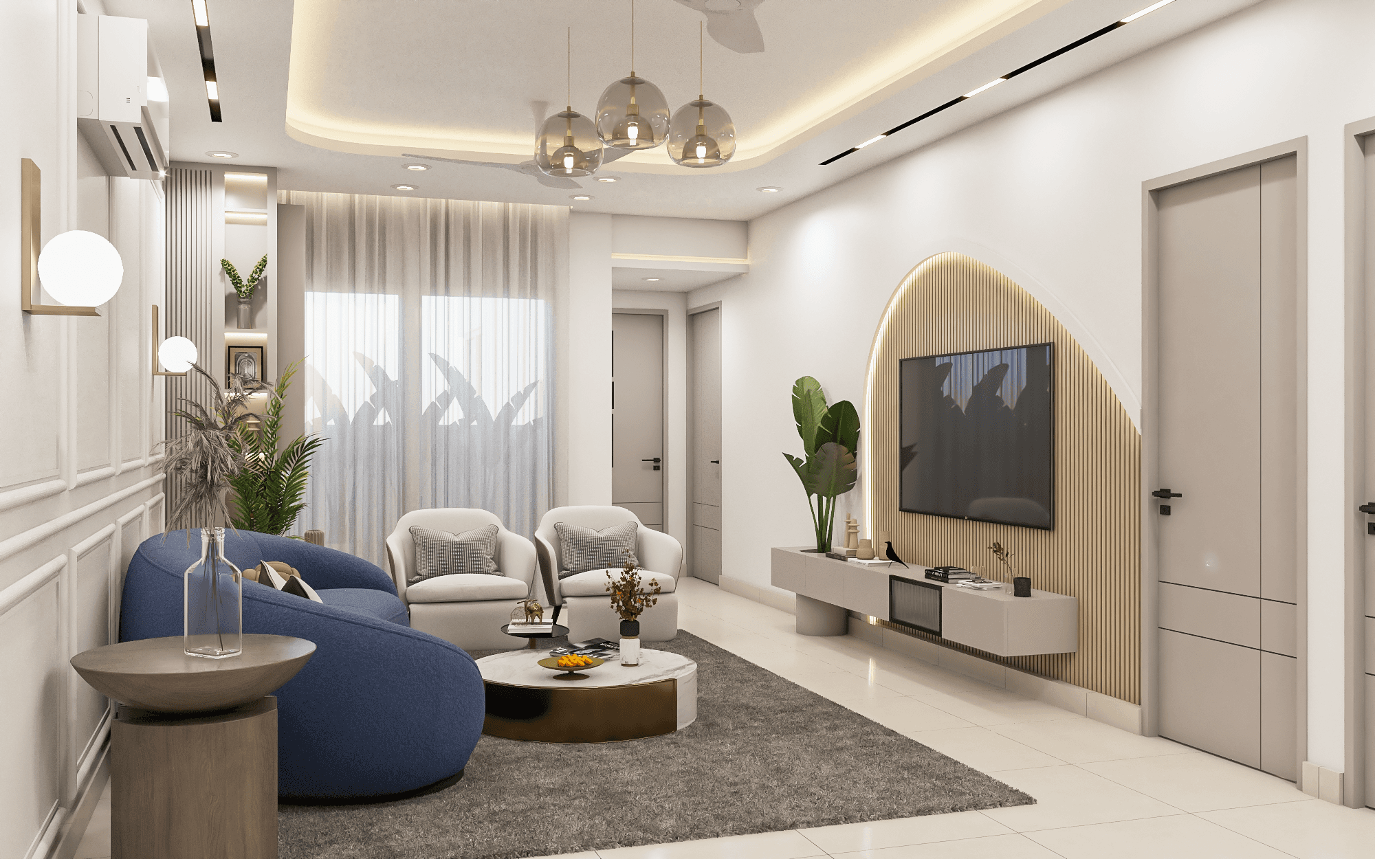 Discover the elegance and functionality of this 1,800 sqft apartment in Greater Noida, where modern design meets comfort. This carefully crafted interior project offers a perfect balance of style and practicality, maximizing space while creating a cozy yet luxurious atmosphere. With a contemporary design approach, the apartment features open-plan living areas, smart storage solutions, and high-end finishes that elevate every corner. Each room is thoughtfully designed to cater to modern living, ensuring both aesthetics and functionality. Experience a new level of urban living with this sophisticated, meticulously designed apartment.