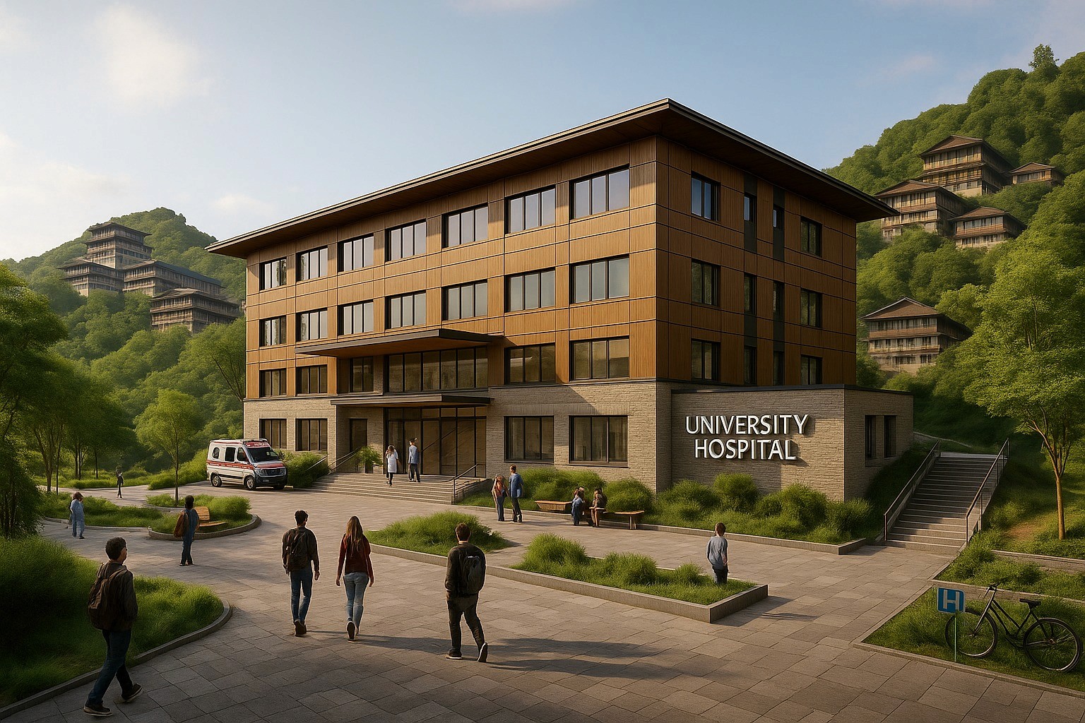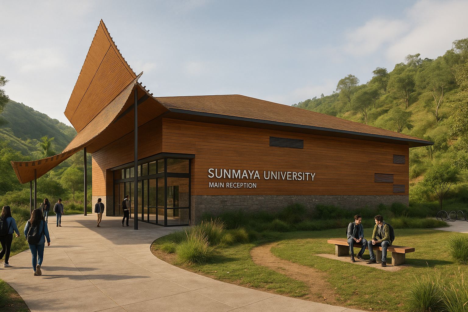 The Sunmaya University project, located on a sprawling 120-acre site in Nagaland, is designed with a focus on vernacular architecture that reflects the region's rich cultural heritage. The campus includes modern academic blocks, a hostel designed to accommodate 3000 students, and state-of-the-art sports facilities. A university hospital caters to the healthcare needs of the community, while an auditorium with a seating capacity of 750 provides a venue for large gatherings and events. The design integrates local materials and architectural styles to create a harmonious and sustainable environment for learning, living, and recreation.